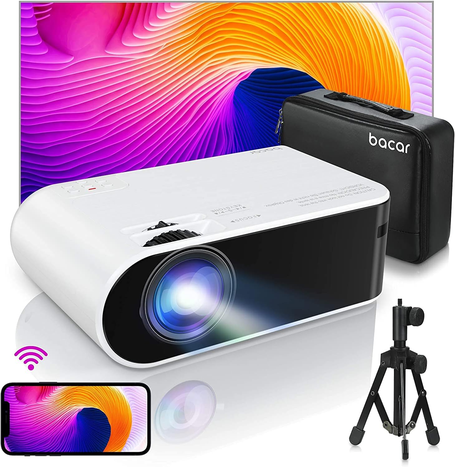 Buy Mini Projector With Projector Screen Bacar 6000 Lux Portable Projector Support 1080p Hd 200 Display Compatible With Hdmi Usb Vga Av Tf Ios Android Ps5 Home Projector Stand Carry Case